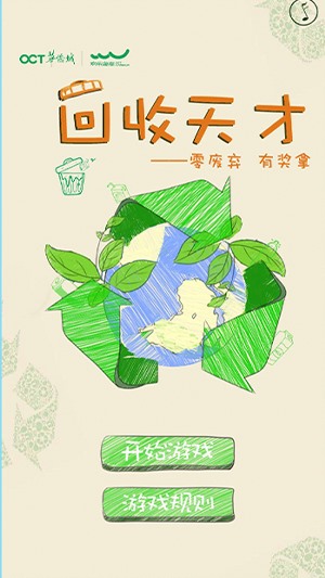 首頁是黃底加上淺綠色的回收垃圾底紋,中間是一個手繪地球加上回收垃圾圖標(biāo),意為保護地球從回收垃圾做起,點擊“開始游戲”進入游戲頁面,游戲頁最下端是 一只垃圾桶,可以通過左右移動 垃圾桶來接住上方掉落的垃圾,然后獲得相應(yīng)分數(shù),游戲結(jié)束后根據(jù)相應(yīng)的分數(shù)可獲得禮包。本H5游戲還做了排行榜,可以和朋友圈 內(nèi)玩過的朋友比拼排行。